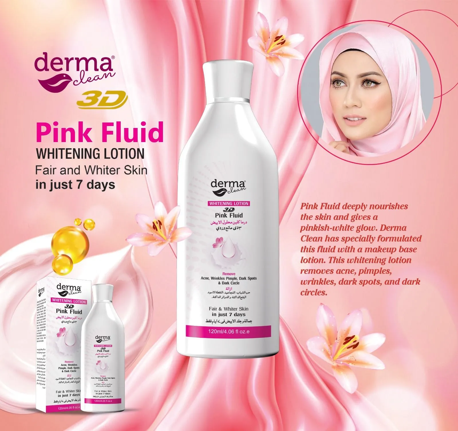 Natural Whitening Effect: Derma Clean Whitening Lotion 3D Pink Fluid helps to naturally whiten your skin, giving you a brighter and more even complexion.